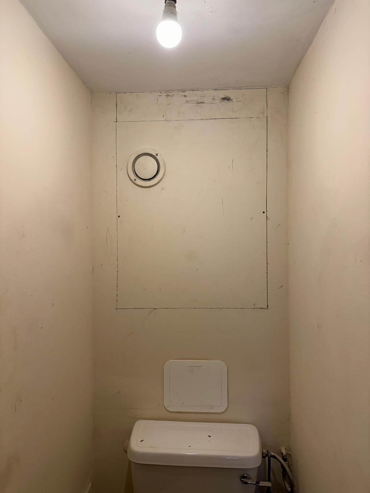 We were contacted by a property management team to address a serious issue with a 6-inch (152.4mm) diameter asbestos foul waste pipe that had cracked due to age and was leaking. Installed in 1959, the pipe ran up 12 floors and was in poor condition, presenting a major health hazard. One of the flats was dealing with water constantly dripping from the ceiling into the WC, so much so that they had resorted to placing an umbrella to catch the foul water containing human urine and waste – a highly unsanitary situation.